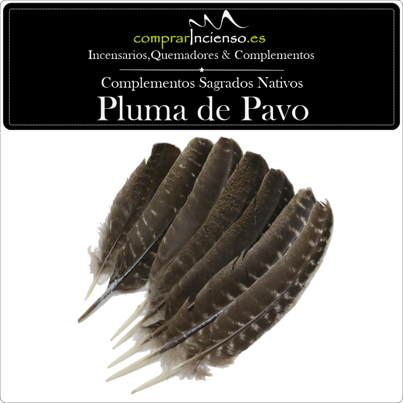 Preciosa pluma de pavo doméstico, ideal para difundir el humo de los inciensos y aumentar su quemado.