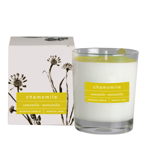 Vela aromática natural Herb Vegetal Manzanilla, un aroma silvestre a manzanilla con matices organicos tipicos del mediterraneo, un viaje aromatico importante para tu hogar creando un entorno a campos silvestres. Un lujo aromatico para nunca olvidar los origenes de la naturaleza.